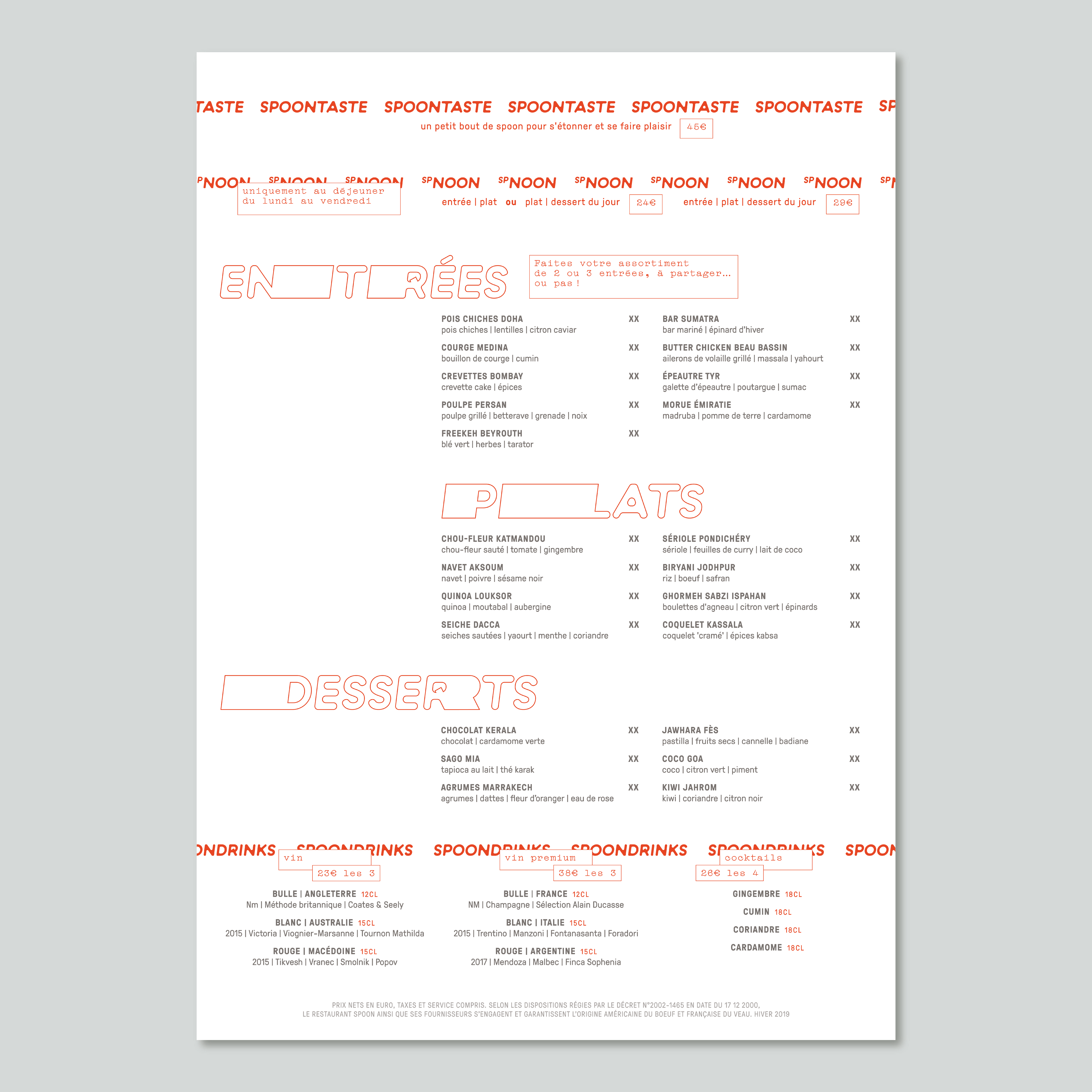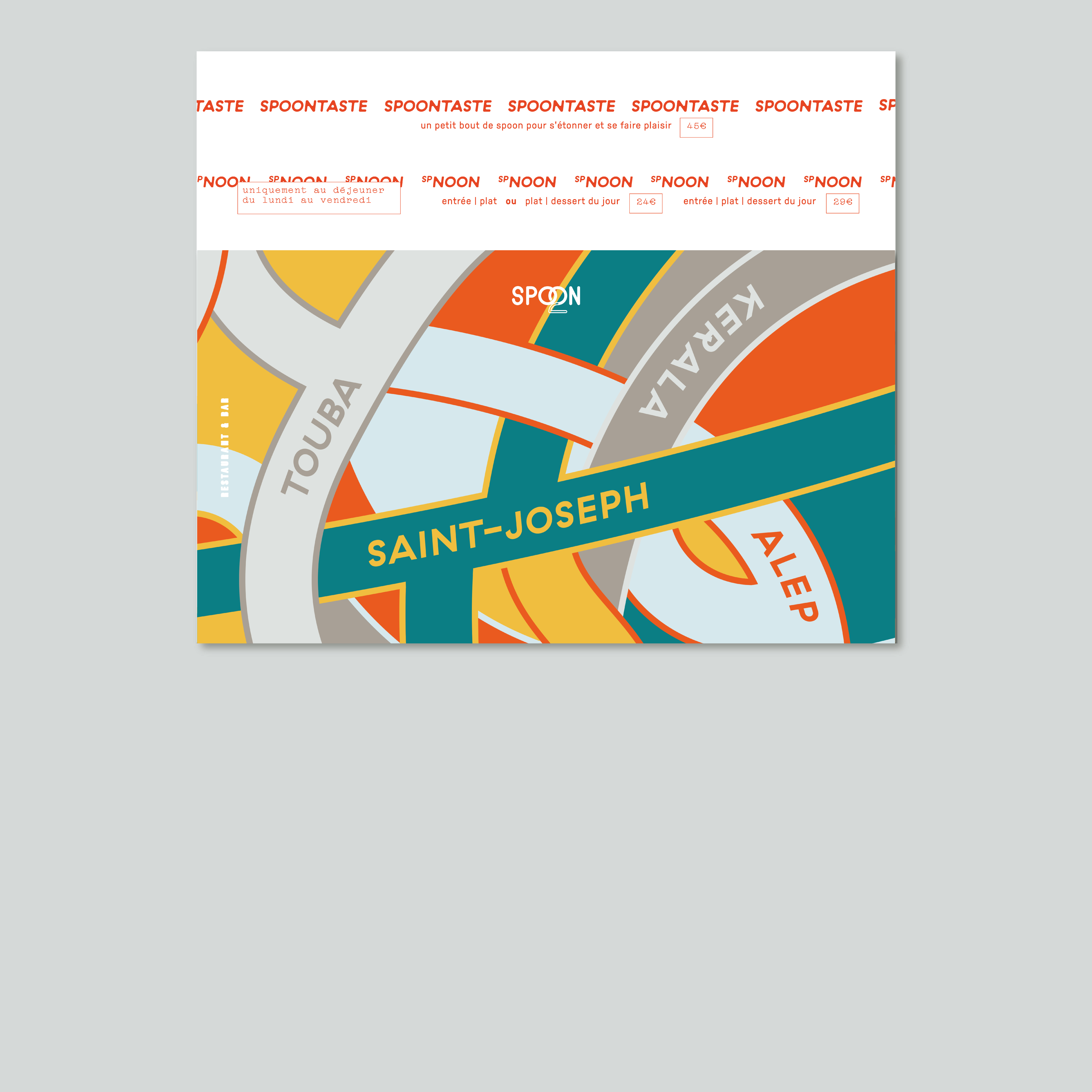 Spoon restaurant takes you along the spices road(s) for a culinary and colorful journey. As we did with the graphic design of the place !